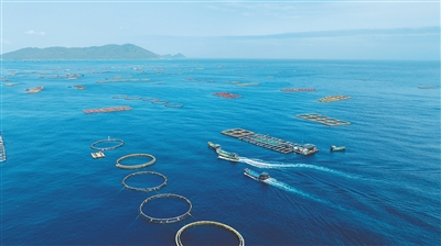 俯瞰陵水深海养殖网箱集群。(资料图)