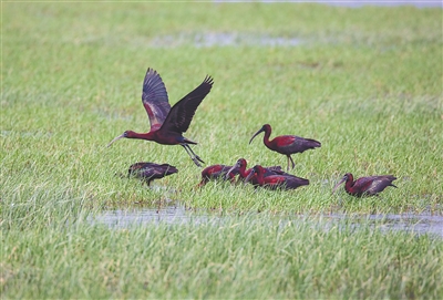 国家一级重点保护动物彩鹮现身海南昌江海尾国家湿地公园。薛美丽 摄