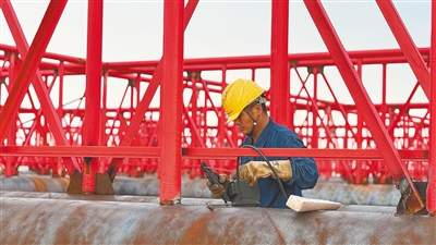 12月9日,在昌江海尾镇中心渔港,海南永昌海洋渔业养殖有限公司(以下简称永昌养殖公司)的工人们正开展重力式钢结构深水网箱焊接作业,一个个由红色钢管拼接而成的网箱在海岸边渐次成型。