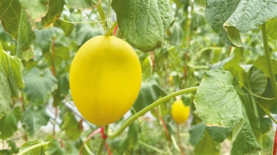 挂在枝头的“小金珠”蜜瓜。