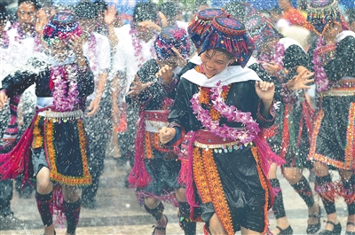 海南七仙温泉嬉水节上,群众享受嬉水欢乐。