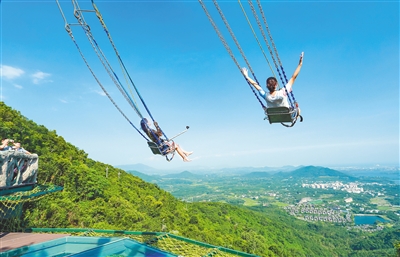 游客体验保亭呀诺达悬崖秋千项目。(资料图)