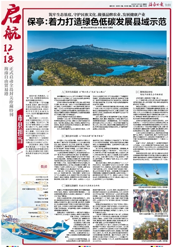 保亭县相关负责人表示,接下来,保亭将充分利用自贸港建设带来的重大历史机遇,发挥好生态禀赋,把保亭打造成绿色经济、低碳经济发展的样板,打造成中欧合作的先行地、先行区。(本报保城12月17日电)