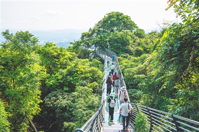 海南百花岭热带雨林文化旅游区的树梢栈道。