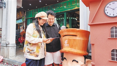 游客打卡体验海口骑楼主题邮局服务。黄文燕 摄