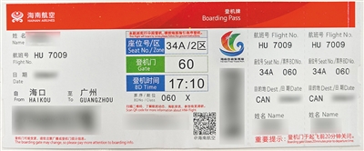 10月1日起新版登机牌在海口国内出港航班正式启用。