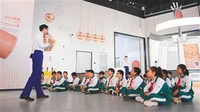 海南科技馆工作人员为学生科普讲解。 海南日报全媒体记者 邱江华 摄