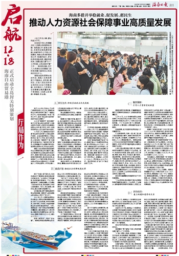 海南自由贸易港全岛封关后,海南人社系统将致力于稳就业、促发展、惠民生,打造人民生活的安全网和社会运行的稳定器,加快推动人力资源社会保障事业高质量发展,不断增强人民群众获得感、幸福感、安全感。