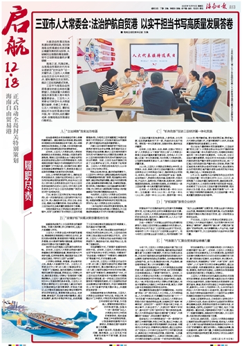 南海之滨,风满征帆。当海南自贸港的时代列车全速驶进“封关运作”这一关键节点,三亚市人大常委会站在历史与未来的交汇点,期盼着抓住历史契机,推动三亚实现跨越式发展。