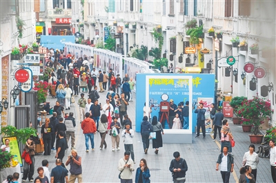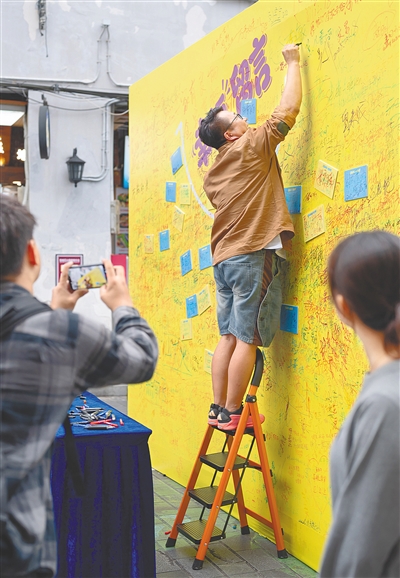 十二月十八日,海口骑楼老街中山路段,市民游客写下幸福留言。海南日报全媒体记者 宋国强 摄