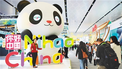 2025中国国际旅游交易会以“你好!中国”为主题,嘉宾在展馆内打卡拍照。海南日报全媒体记者 张茂 摄