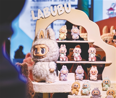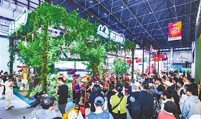 “秦代表陕西,也代表秦岭,还和兵马俑的灰色系呼应。”陕西秦岭四宝文创有限公司工作人员田库锋说,“憨憨”指的是熊猫的憨态可掬。展台上,穿着唐朝服饰的“秦憨憨”玩偶、抱着竹笋的“吃货版”手办、印着棕色熊猫图案的帆布包,吸引了不少亲子观众。