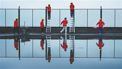 2023年5月8日,在海口港(秀英港区),工人们紧锣密鼓推进海南全岛封关运作的围网建设。该工程是海南全岛8个对外开放口岸和10个“二线口岸”运行的关键基础设施。封关后,海南全岛将建成一个海关监管特殊区域,实施以“‘一线’放开、‘二线’管住、岛内自由”为基本特征的自由化便利化政策制度。