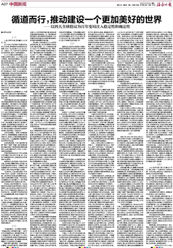 稳定性是文明存续的根基,确定性是发展前行的航标,筑牢根基、锚定航标,人类才能跨越动荡,实现文明永续发展。当前,各种深层次矛盾相互纠缠,若消极无为人类只会陷入更深困境。这样的历史阶段,世界尤其需要一面旗帜引领前行方向。