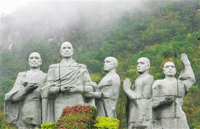 三亚大小洞天旅游区鉴真东渡雕塑(2006年)。海南日报全媒体记者 张杰 摄