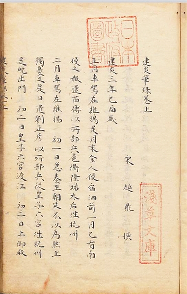 “浅草文库”收藏的赵鼎《建炎笔录》1803年抄本。 陈耿 摄