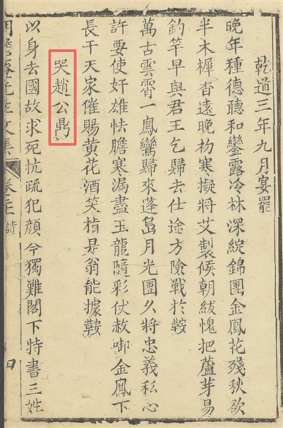 清代乾隆年间刊行的《胡澹庵先生文集》收录了胡铨的《哭赵公鼎》诗。 陈耿 摄