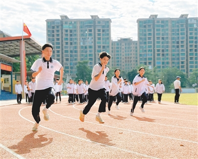 昌江思源实验学校操场上,学生在锻炼。