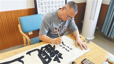 在二楼的书画室,退休3年的王兴能向记者展示了他的最新画作《金鸡报喜》。“今年已经画了10幅画,这幅花了3天时间。”王兴能退休前在学校教过书法和美术,来到这里后继续发挥特长,墙上悬挂的多幅作品均出自他手。如今,他常与好友张先结伴到此切磋书法,退休生活过得充实而有滋味。