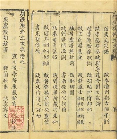清代乾隆年间,胡铨后人刊印的《胡澹庵先生文集》中,收录了胡铨与陈适、李光等人交流的诗文。