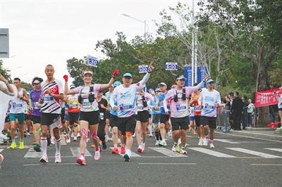 当天,一场万人赛事——2025海南儋州马拉松赛在洋浦滨海文化广场开跑。来自国内外的1.1万名参赛选手用脚步丈量儋州古郡的千年风华,用热血点燃这座开放之城的豪迈激情。