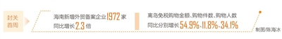 同时,海南自贸港实施的“零关税、低税率”等一系列新的开放政策,吸引了更多外贸主体来琼投资兴业。封关首周,海南新增外贸备案企业1972家,同比增长2.3倍,截至目前全年新增备案报关单位3万余家,同比增长超40%。数据快速增长的背后是企业对封关运作后海南自贸港发展的信心。一名来咨询海关报关单位业务的企业人员说:“我们的很多原材料来自海外,借助自贸港‘加工增值免关税’政策,我们的生产成本大幅降低,产品市场竞争力显著提升。”