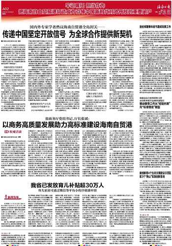 12月18日,海南自由贸易港正式启动全岛封关,中国对外开放迎来具有里程碑意义的标志性举措,海南自由贸易港建设迈入改革开放发展的新起点、新阶段,引发了国内外专家学者的广泛关注与深入探讨。专家学者普遍认为,此举不仅关乎海南自贸港的高质量发展,其探索与实践更将为中国深化改革开放、构建新发展格局提供宝贵的“海南经验”。