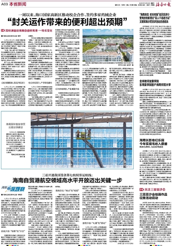 随着海南自贸港全岛封关运作正式启动,作为自贸港产业发展的核心载体,海口国家高新区乘势而上、精准发力,实现多点突破,解锁开放发展新图景。