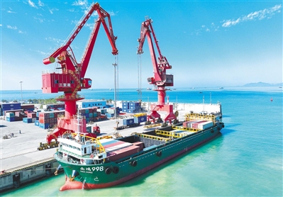 12月18日上午,装载着经海南自贸港加工增值免关税的高等级技术分级橡胶的货车抵达三亚港(南山港区)的泊位卸货装船。