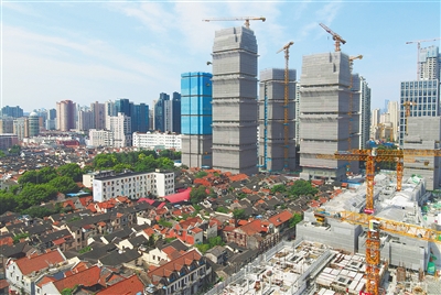 上海黄浦区508-514街坊地块旧城区改造一期项目建设中的楼房。新华社发