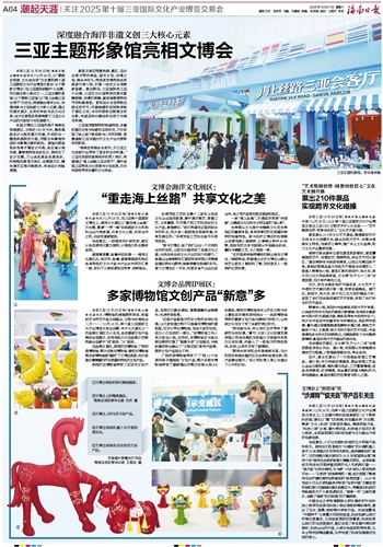 “海南自贸港全岛封关,为三亚文化旅游产业带来了更多的合作机遇。”三亚市旅游发展局相关负责人表示,希望通过“海上丝路三亚会客厅”,集中呈现三亚特色文化资源与文创成果,为市民游客带来丰富的文化体验。