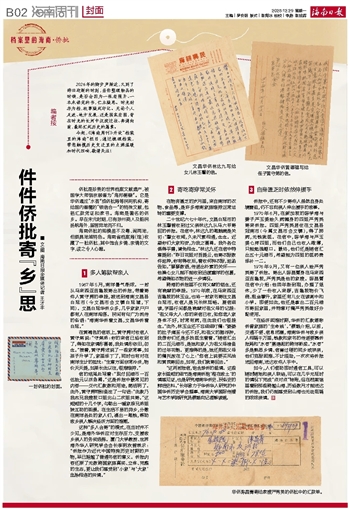 “这两封批信,饱含琼侨的温情。这些家长里短的细节是海南侨胞‘根在故土’的情感见证,也是研究海南华侨史、民俗史的鲜活史料。”长年致力于华侨华人研究的中国华侨历史学会理事、海南大学国际传播与艺术学院研究员蔡葩向记者解读道。