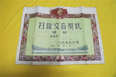 1958年琼东县(今属琼海市)发给一位学员的扫除文盲奖状。