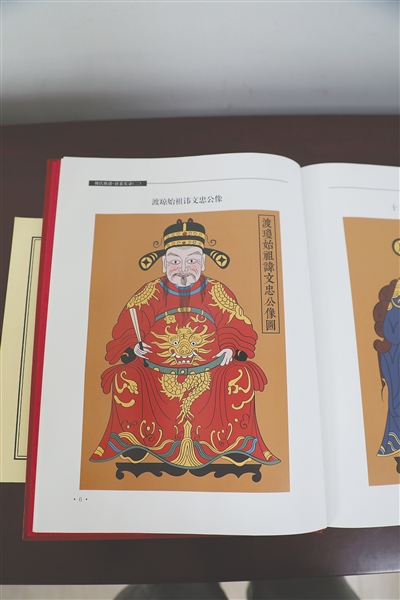 《海南傅氏族谱》里的傅氏迁琼始祖傅文忠像。