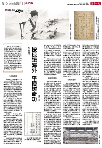 ■ 白金杰胡桂芳,明万历年间进士,他虽然出身文官,却以战功名垂青史,是“万历三大征”(明朝万历年间展开的三次大规模军事行动)之播州之役的“底定”功臣,并因功授任贵州巡抚、兼督湖北、湖南、川东等地,是一位名副其实的封疆大吏。在担任广东等处提刑按察司、分巡海南道的五年间(1593—1597),胡桂芳曾主导编纂苏轼海南诗文集《居儋录》,并为海南文教事业作出重要贡献。这段事迹较少有人提及。