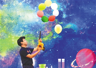 河南省科技馆“魔术科学秀”演出现场。
