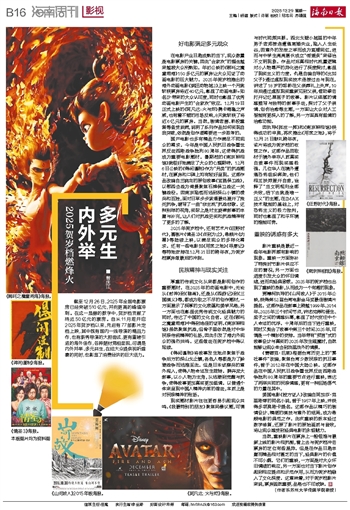 在电影产业日趋成熟的当下,观众数量是电影票房的关键,因此“合家欢”的理念越来越被大众所熟知。年初公映的《哪吒之魔童闹海》150多亿元的票房让大众见证了动画电影的巨大魅力。2025年贺岁档推出的海外动画电影《疯狂动物城2》上映一个月就斩获票房将近40亿元,彰显了动画电影+知名IP带来的大众认可度,同时也彰显了优秀动画电影产生的“合家欢”效应。12月19日正式上映的《阿凡达:火与烬》携卡梅隆之声威,也有着不错的市场反响,8天就斩获了将近6亿元的票房。当然,剧情老套、桥段重复等备受诟病,说明了系列作品如何实现自我突破,依然是创作者需要进一步思考的。
