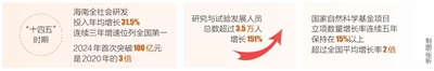 本报海口12月29日讯(海南日报全媒体记者邱江华)12月29日,“高标准建设海南自由贸易港”系列主题新闻发布会(第九场)——海南省科技系统“十四五”时期发展成效专场在海口举行。海南省科技厅相关负责人在会上表示,“十四五”时期,海南科技创新实现了历史性、整体性、格局性变化,迈向“立起来”“强起来”的新阶段。发布会介绍,“十四五”时期,海南全社会研发投入年均增长31.5%、连续三年增速位列全国第一,2024年首次突破100亿元、是2020年的3倍。2024年,海南综合科技创新水平全国排名提升至第22位,比“十三五”末上升了6位,跃居全国第二梯队。研究与试验发展人员总数超过3.5万人,增长151%。国家科学技术奖实现多项突破。国家自然科学基金项目立项数量实现翻番,增长率连续五年保持在15%以上,超过全国平均增长率2倍,同时高水平项目数量大幅提升,基础和前沿研究进步显著。