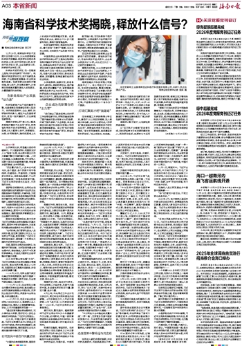 科学技术奖的评定,在一定程度上是地方科技创新的“风向标”。梳理本次获奖项目可见,技术创新更具突破、产业赋能更显精准、社会效益愈发显著。创新资源正加速向关键领域、核心技术、民生需求集中,为海南自贸港高质量发展注入成色更足、分量更重的科技动能。