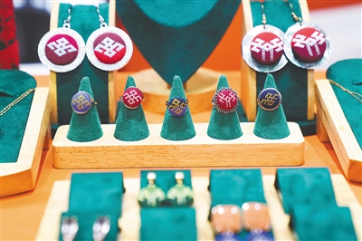 在三亚文博会现场展示的黎锦文创产品。
