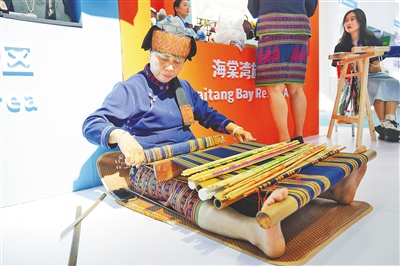 在独具匠心的海南自贸港展区,一座以黎族船形屋非遗技艺为灵感的主题形象馆格外引人注目。场馆外观如同一艘即将远航的帆船,顶部的装饰帆布巧妙融入了海洋波纹与黎锦传统纹样。“这个设计象征海南自贸港正乘风破浪、扬帆前行。”三亚主题形象馆负责人介绍,馆内不仅集中展示了三亚在海洋文化、民族文化、天涯文化与科技创新领域的保护与转化成果,更通过沉浸式体验,让观众直观感受“文化+”融合发展的三亚实践。