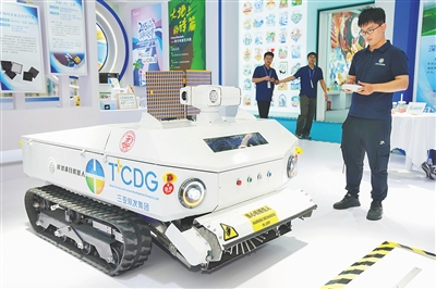 三亚文博会现场展示的岸滩清洁机器人。