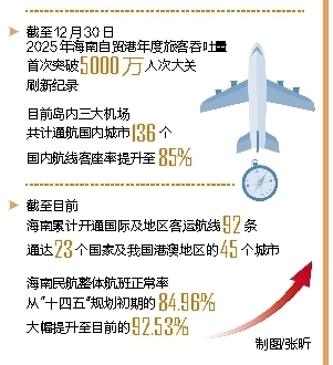 12月18日,海南自贸港全岛封关正式启动;12月30日,海南控股旗下岛内三大机场年旅客吞吐量首次突破5000万人次,两大标志性事件叠加,彰显自贸港对外开放的强劲活力。海南航空、南方航空、俄罗斯航空等中外航企负责人纷纷表示,将以此为新起点,锚定封关机遇,以航线织网、服务升级赋能航空枢纽建设,共享自贸港发展红利。其中,海航、南航作为海南省基地航空公司,始终发挥着海南航空运输主力军的作用;俄罗斯航空则是三亚最大的国际(地区)航线承运人,其积极参与也将为海南国际航线拓展注入新动能。