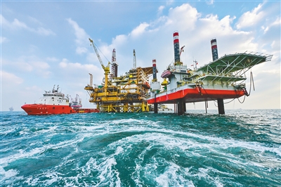12月21日,我国海上最大油田渤海油田2025年累计生产油气当量突破4000万吨,创历史新高。图为当日拍摄的渤海油田海上油气平台作业现场。新华社发