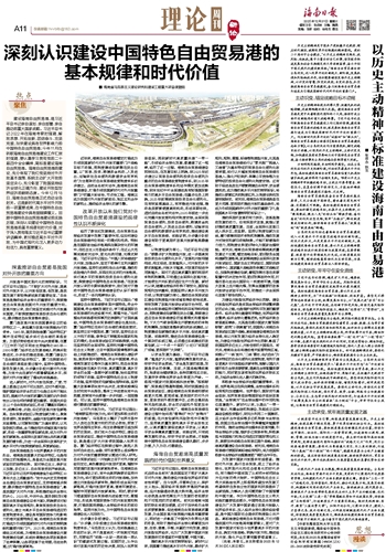 历史主动精神体现为洞察大势、把握先机的战略清醒,是破解难题的强大武器。建设海南自由贸易港是党中央着眼国内国际两个大局,推动形成全面开放新格局的重大战略部署。习近平总书记在听取海南自由贸易港建设工作汇报时强调,建设海南自由贸易港的战略目标,就是要把海南自由贸易港打造成为引领我国新时代对外开放的重要门户。作为新时代改革开放的“试验田”和“排头兵”,海南自由贸易港要全面落实《海南自由贸易港建设总体方案》,以全岛封关运作为重要契机,锚定战略目标不动摇,以强烈的历史主动精神,主动识变克难,加快建设具有世界影响力的中国特色自由贸易港,奋力推动事关全局的战略任务取得重大突破。