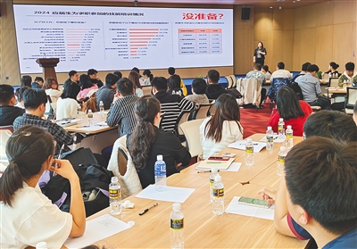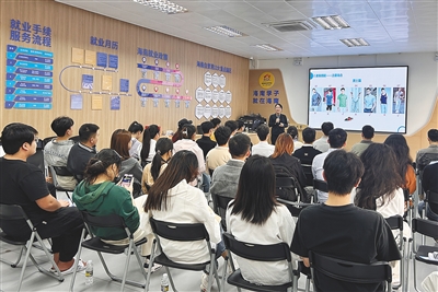 除了“一对一”指导,服务站还通过讲座、沙龙、分享会等形式,开展多样化的职业指导活动。2025年8月,服务站在海口复兴城互联网信息产业园推出“职场模拟实习体验活动”,以真实岗位任务为线索,让学生在“沉浸式”环境中练就沟通协作、问题解决与职业表达等能力。