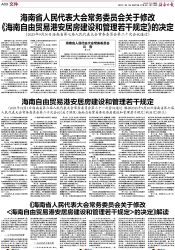 《海南自由贸易港安居房建设和管理若干规定》根据本决定作相应修改并对条文顺序作相应调整,重新公布。