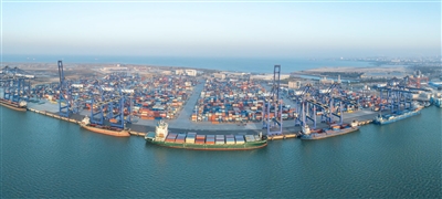 1月1日,俯瞰繁忙的洋浦国际集装箱码头。海南日报全媒体记者 李天平 摄