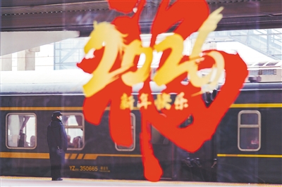 1月1日,铁路客运工作人员在陕西咸阳车站迎接进站列车。