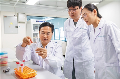 在科技城的海南省种业实验室,科研人员在做研究。